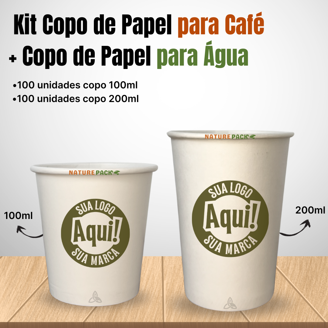 Kit completo com copo de papel para café quente e copo de papel para água, suco ou refrigerante
