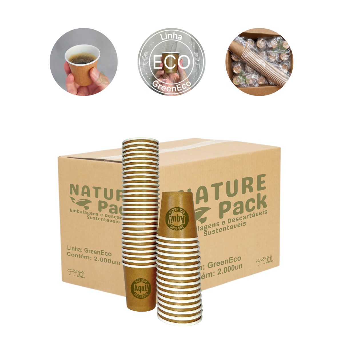 Copo de Papel Descartável Nature Pack Biodegradável, ideal para café curto, coado, amostra e degustação bebidas quentes ou frias. Compatível com cafés de garrafa, não recomendamos para máquina. festas, eventos, copa, feira, congresso, convenções, escritório, corporativo, escolas, hospitais, hotéis e restaurantes. Suporta quente, refrigerados e congelados.