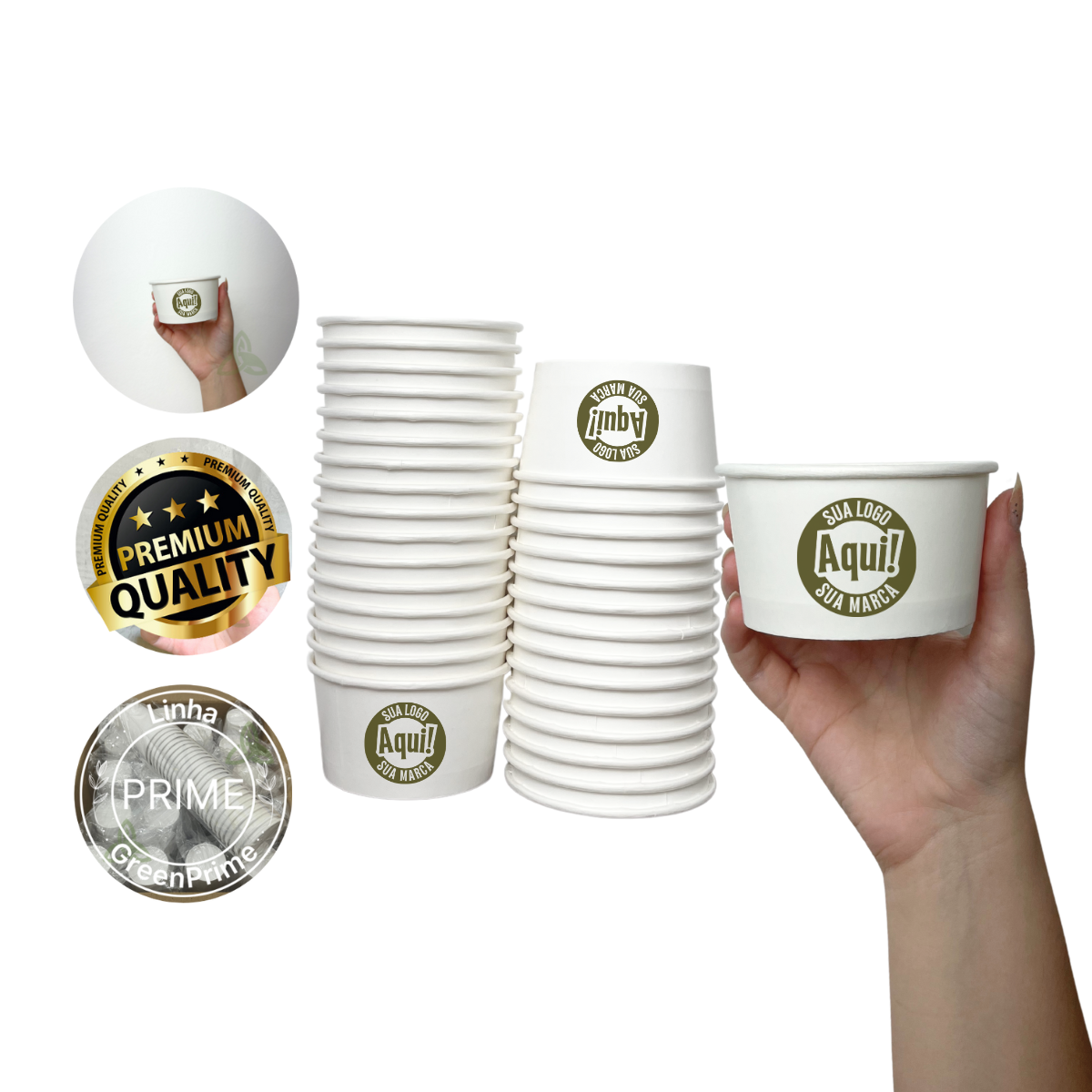 Pote Papel 220ml Descartável Sustentável Premium, ideal para sorvetes, bolo de pote, doces, saladas, açaí, sobremesas, eventos, delivery e pequenas porções de alimentos sólidos, pastosos e líquidos, quentes ou congelados